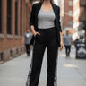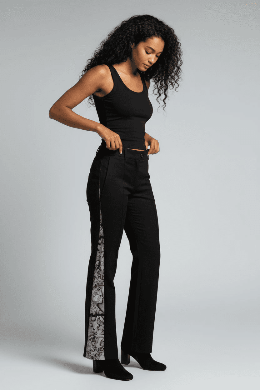 Introducing an instant classic from Fefe Couture: the Black Flared Jeans—a silhouette that commands attention and tells a story.