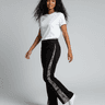Crafted from premium black denim, these jeans feature a dramatic, leg-lengthening flare. The intrigue lies in the subtle artistry: a strategically placed “peek-a-boo” panel reveals the exclusive “Musical Journey” artwork by Shannon Studios.