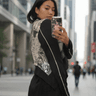 Fefe Couture, known for her creativity takes a Cropped Jacket and adds a twist by using purposeful as well as flattering A-Symmetrical lines. This beautiful concept is a statement for your fashion collection. Its dynamic structure is celebrated by exquisite sparkle diamond piping that traces the silhouette, catching the light with every move. The jacket is transformed into a piece of fine art with a dedicated panel of original work by Shannon Studios.