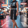 The ensemble centers around a sharp, contemporary Cropped Vest, distinguished by strategic reflective accents that capture light and command attention in motion. This utilitarian structure is punctuated by art: the vest’s pockets feature detailed, original artwork by Shannon Studios.