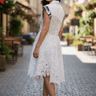 From the atelier of Vancouver’s definitive couturière, Fefe Couture, comes the Short A-Symmetrical Floral Dress – a masterful study in material poetry. It features an architectural flow of intricate floral lace, meticulously layered to evoke the organic asymmetry of nature. The silhouette is a dramatic sweep, a cascading narrative that marries the raw, untamed spirit of the ever changing landscapes of Queen Elizabeth Park – with the disciplined structure of high-fashion design. Its movement is an ode to effortless, wind-swept glamour. This piece transcends mere trend; it is a signature moment. It is the sound of rain on glass, translated into lace. Wear the bouquet. Define the space with elegance.