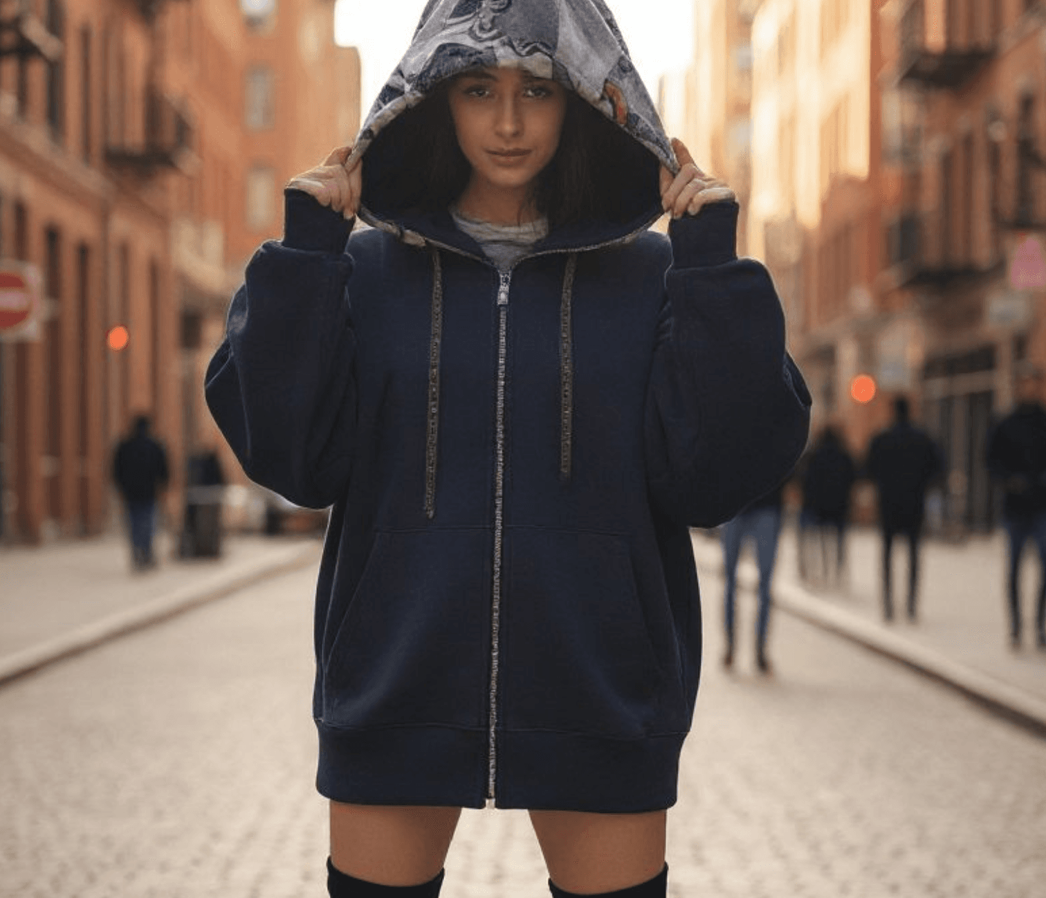 NEW! You fell in love with our one of kind oversized designer bishop sleeve hoodie; and due to popular demand we are releasing the same hoodie with a zip up option.