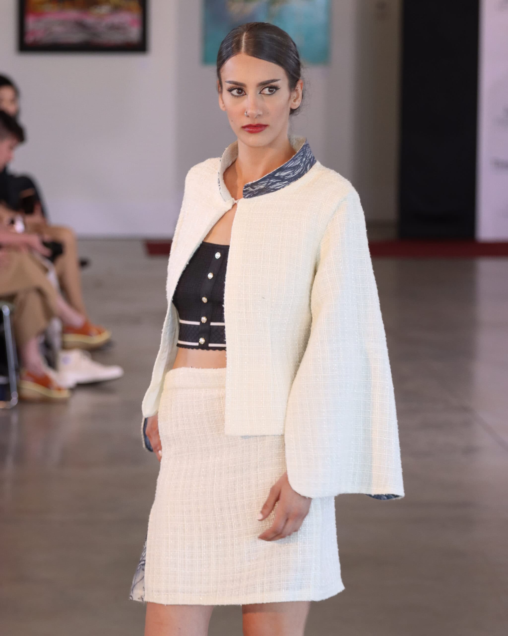 White-tweed-jacket-with-peek-a-boo-sleeves-skirt