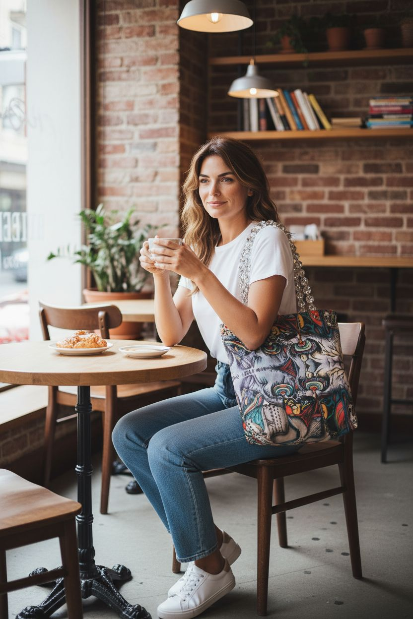Alter Ego Fashion Tote Bags With Original Art & Crystal Handles