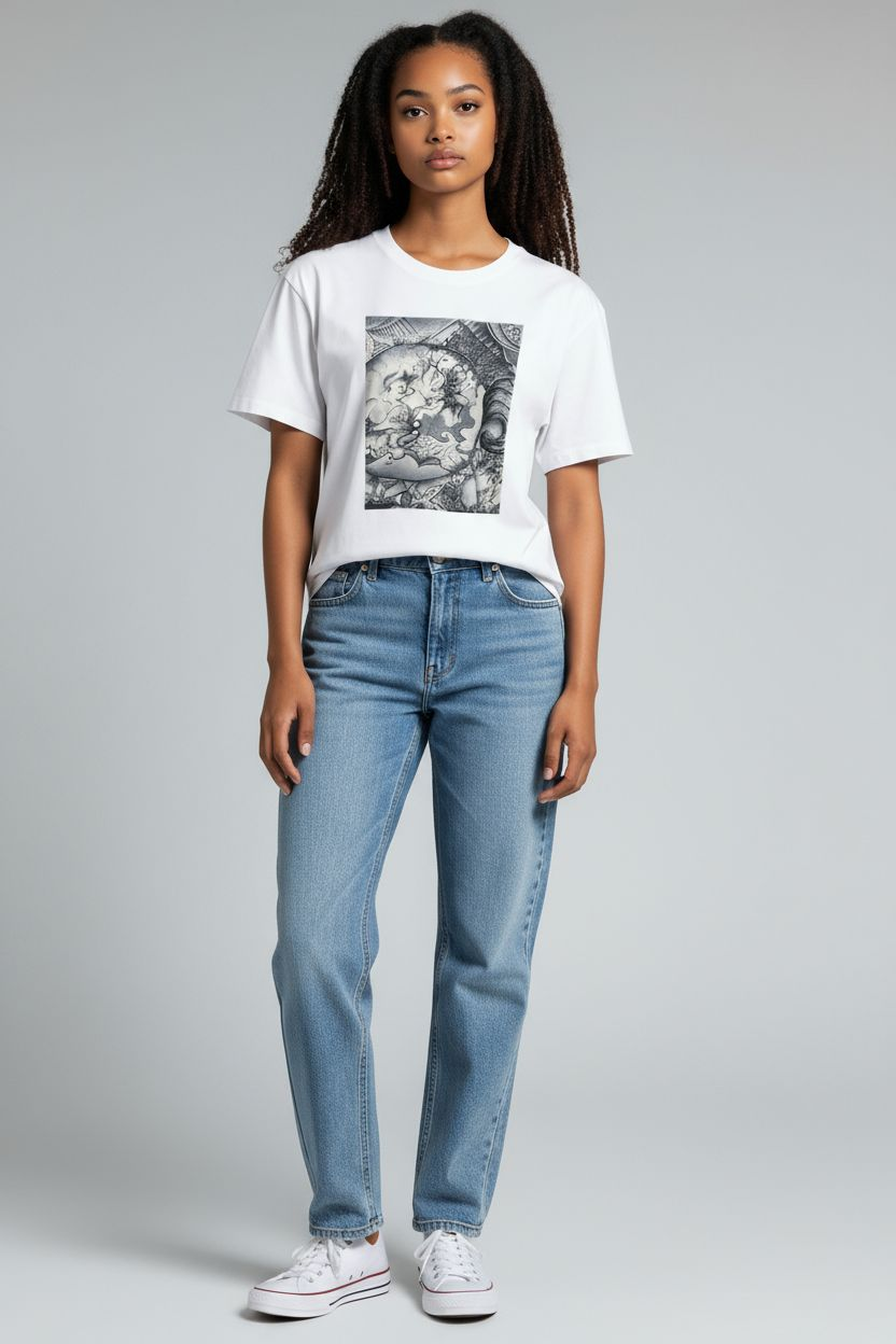 The Chroma Bespoke Tee Elevate your essentials with this exclusive T-shirt collaboration between Fefe Couture and Shannon Studios. Each T-shirt is transformed into a vibrant, wearable canvas showcasing original artwork through advanced dye-sublimation printing. This technique permanently infuses the full-color art directly into the fabric fibers, ensuring a breathtaking, photo-realistic finish that is incredibly soft, completely durable, and guaranteed never to crack, peel, or fade.1 The Bespoke Process: To ensure your piece is perfect, after purchase, we will personally contact you to assist you in selecting the ideal original art piece from the Shannon Studios collection and…