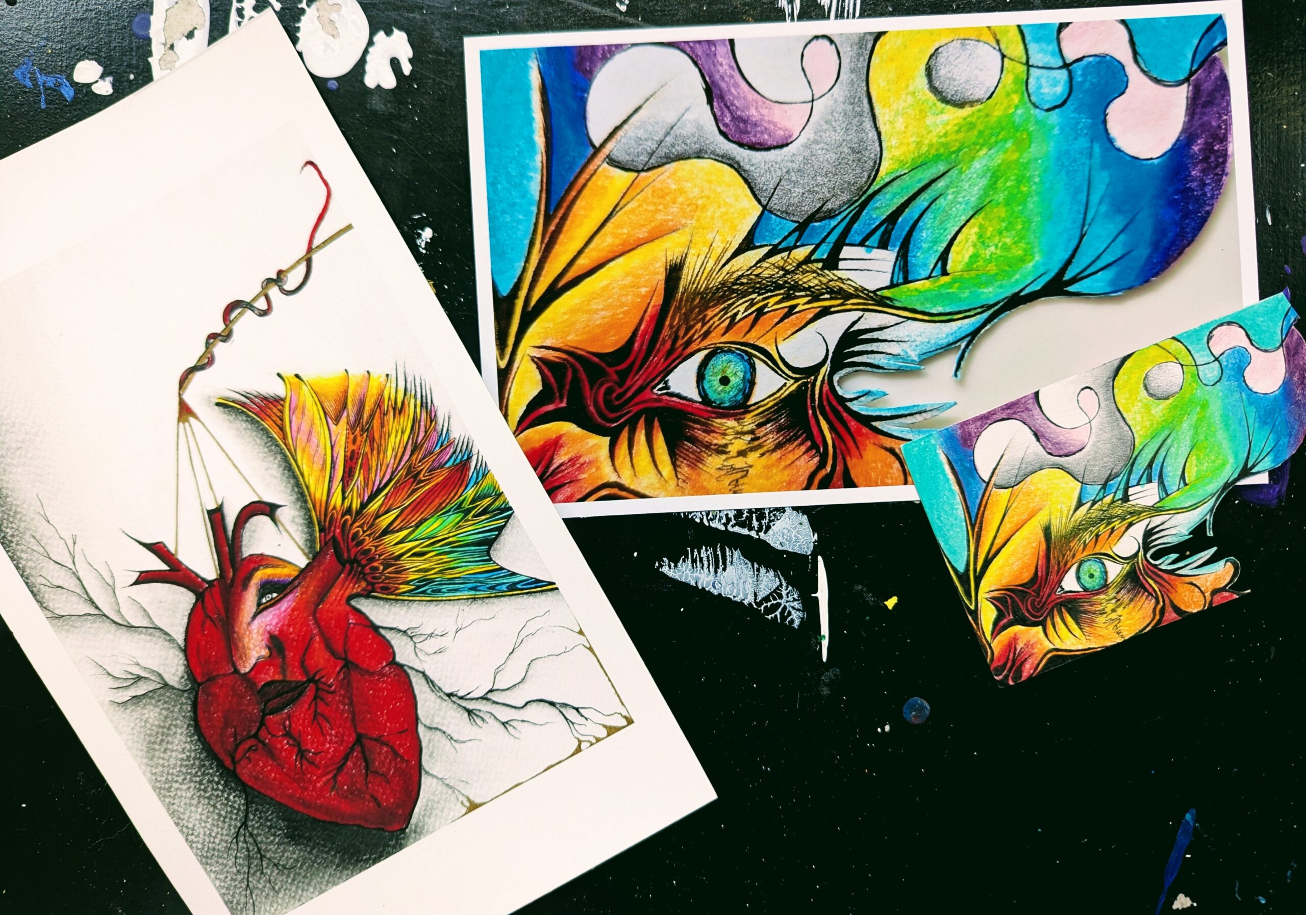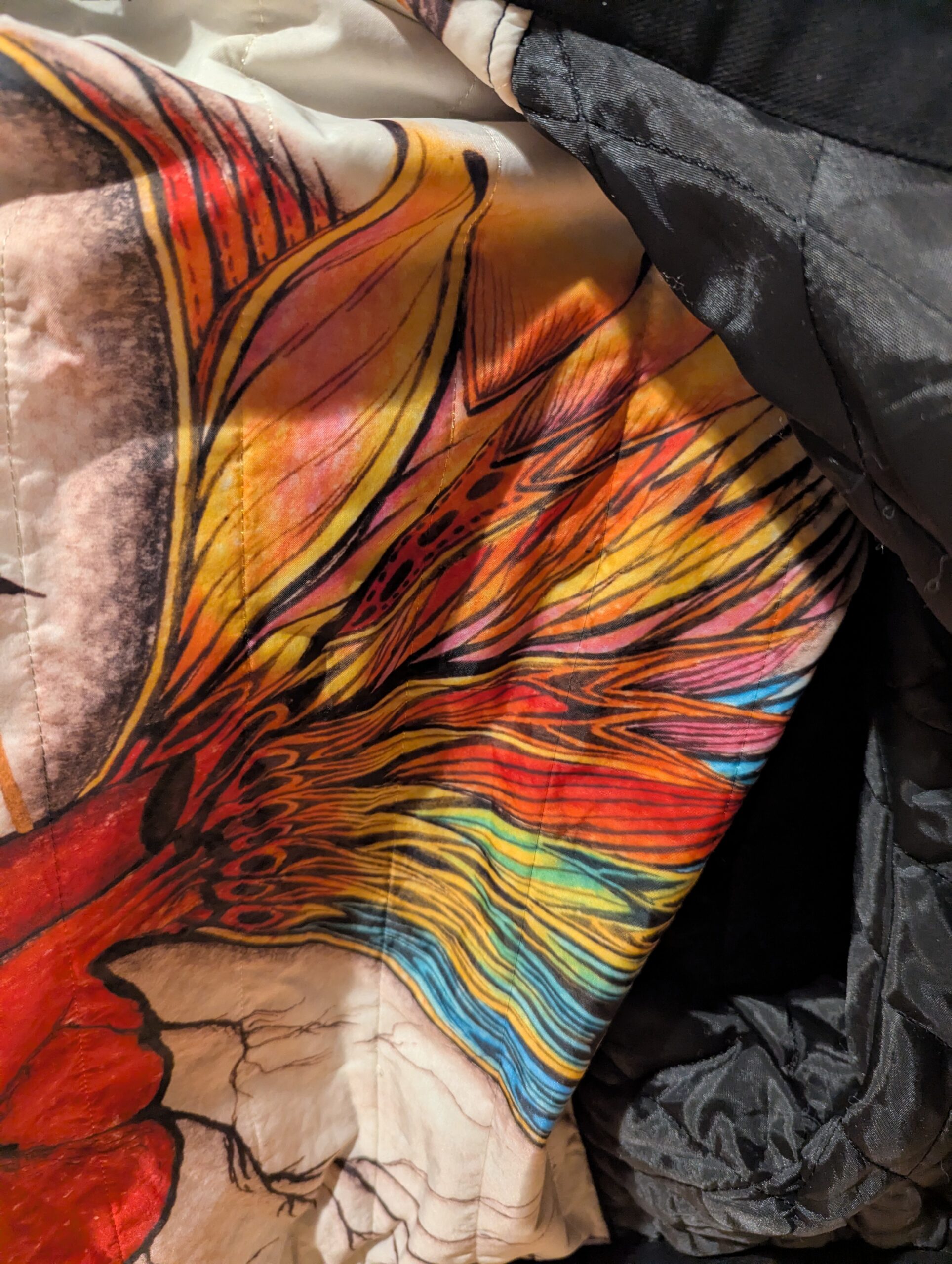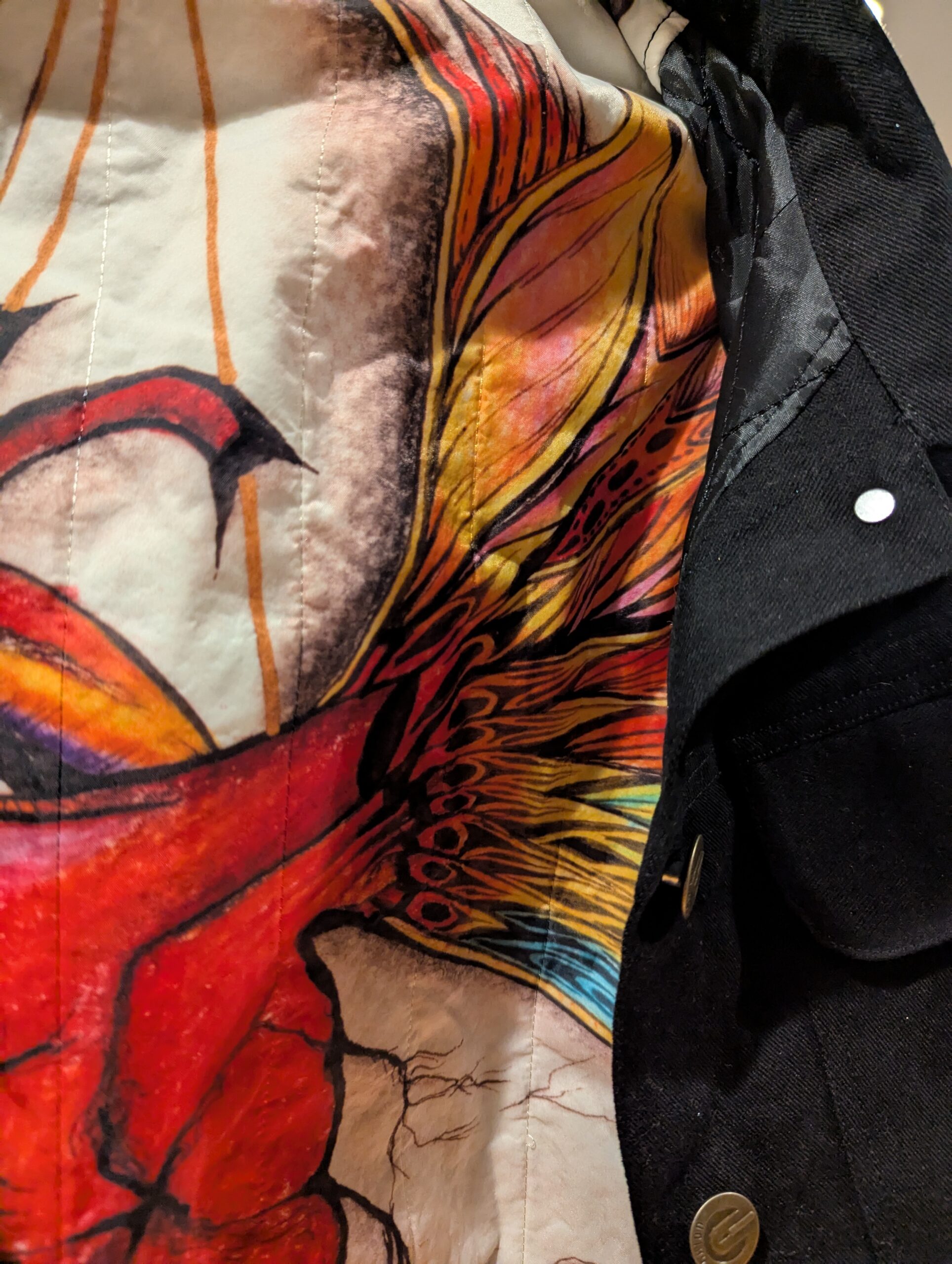 The “Altius” Cropped Jacket From the visionary world of Fefe Couture, comes a piece that merges street-smart structure with the soul of a dream: the Cropped Insulated Jean Jacket. Built in sharp, contemporary black denim and engineered for cool-weather utility, this jacket is elevated by Shannon Studios fine art that tells a story. The warm lining perfect for Vancouver climate, features an original, surrealist masterpiece: a powerful image of a Heart yearning for flight, its surface bursting into beautiful, detailed wings with every imagined beat. The “Altius” Cropped jacket is meant to take your dreams high; take flight.…