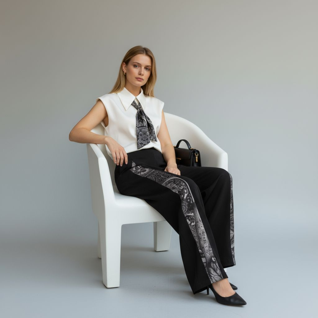 Sleeveless Art Silk Dress Shirt In White With Art Silk Scarf Original Art