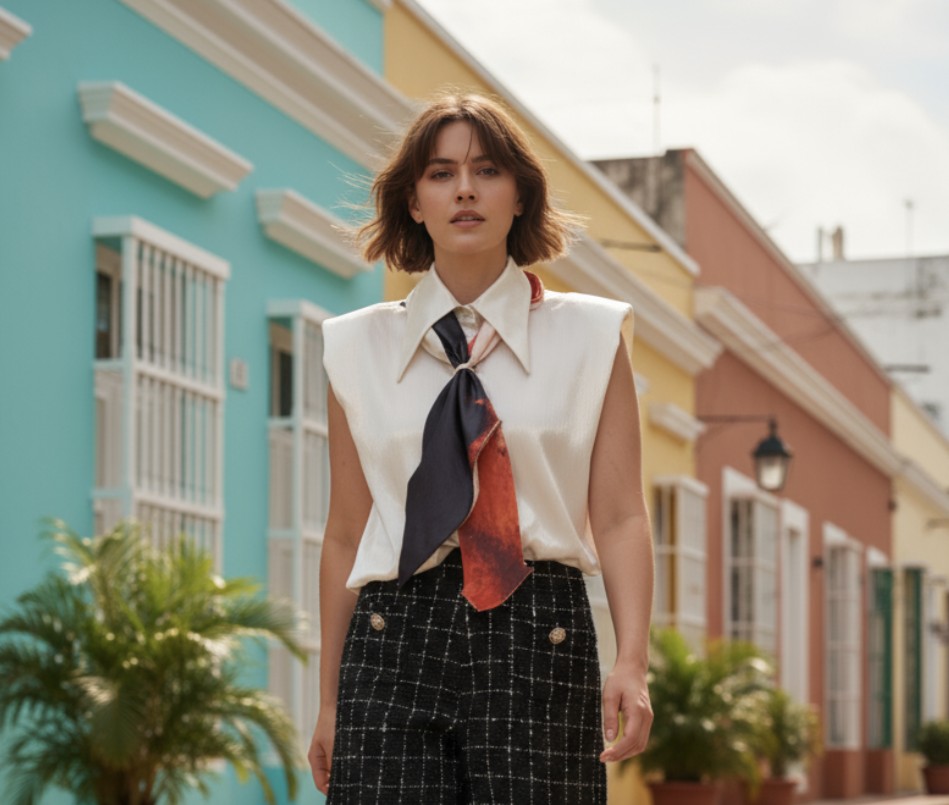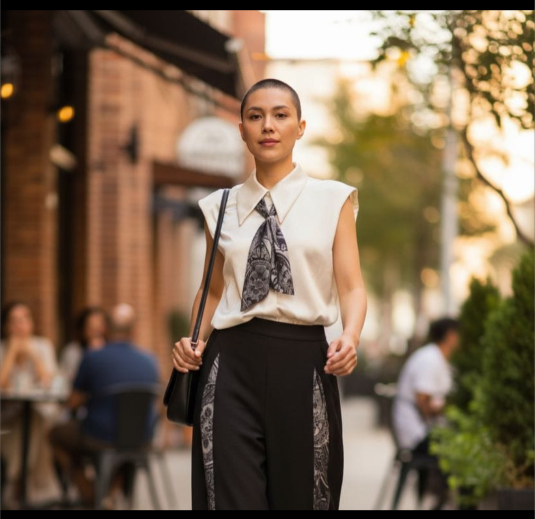 The Muse Top: A Fluid Canvas From the atelier of Fefe Couture comes the Sleeveless Art Silk Dress Shirt—a study in luxurious simplicity and expressive art. Crafted from exquisitely soft and fluid Art Silk, this shirt drapes with effortless elegance, offering a polished structure without sacrificing movement. The front features perfectly placed stylish pockets, with bold shoulders. It also has the option to be singed at the bottom with discreet draw strings. This beauitful piece is a one of a kind with a removable art silk scarf; original art by Shannon Studios, transforming the garment into a singular,…